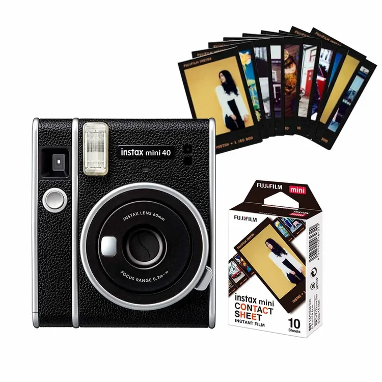 Con el Kit Fujifilm Instax Mini 40, tienes la oportunidad de tomar las mejores fotos instantáneas en tamaño mini con las características especiales de la Cámara mini 40, los colores intensos del papel Instax mini Contact Sheet resaltan, colores, paisajes, objetos en primer plano y selfies con tus amigos, descubre la magia de las luces y sombras del papel Instax mini Monochrome y mira el mundo en blanco y negro. Kit Cámara Instantánea Fujifilm Instax Mini 40 contiene: Cámara Instantánea Fujifilm Instax Mini 40 Papel instax mini “CONTACT SHEET” x 10 films Papel instax mini Monocrome x 10